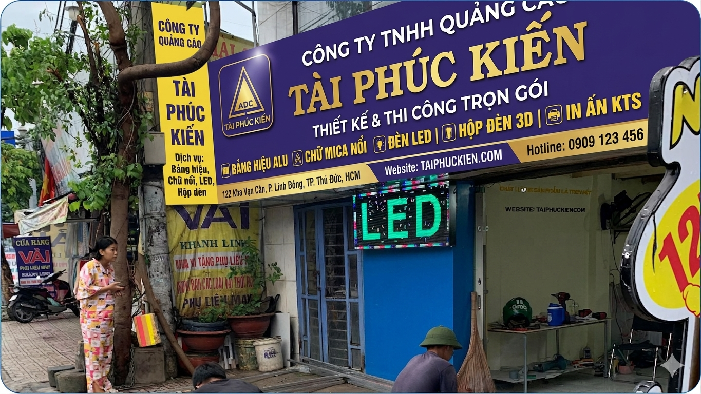 Xưởng quảng cáo: Số 429 Kha Vạn Cân, Phường Thủ Đức, Thành Phố Hồ Chí Minh.