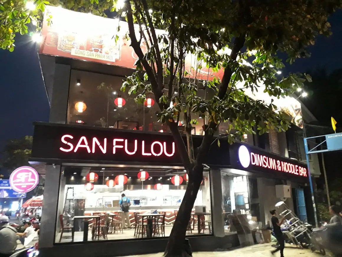 - Ánh sáng trang trí: đèn LED và Neon Sign tạo không gian bắt mắt, thu hút thực khách ngay từ mặt tiền.