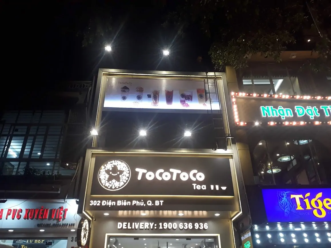 - Hộp đèn tròn treo ngang hoặc hộp đèn mica in UV: Thích hợp cho quán trà sữa, cà phê take-away, dễ nhận diện thương hiệu.