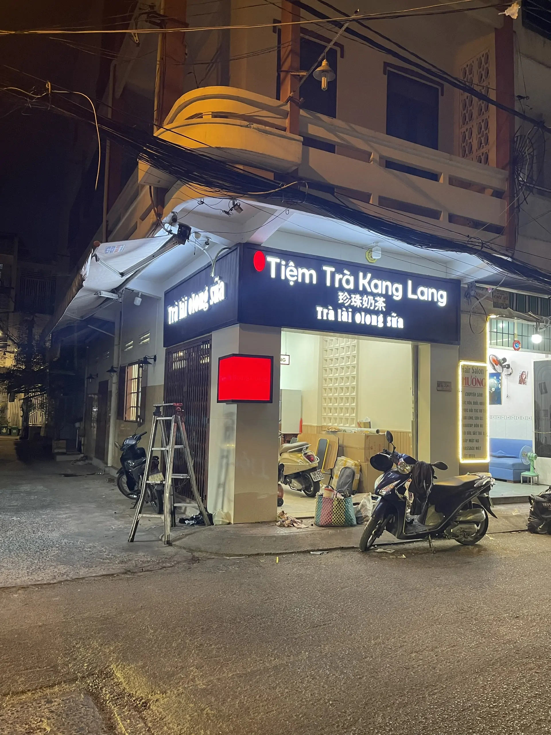 - Quán trà sữa trẻ trung: bảng hiệu sáng màu, có hình ly trà sữa, topping, màu pastel dễ thương.